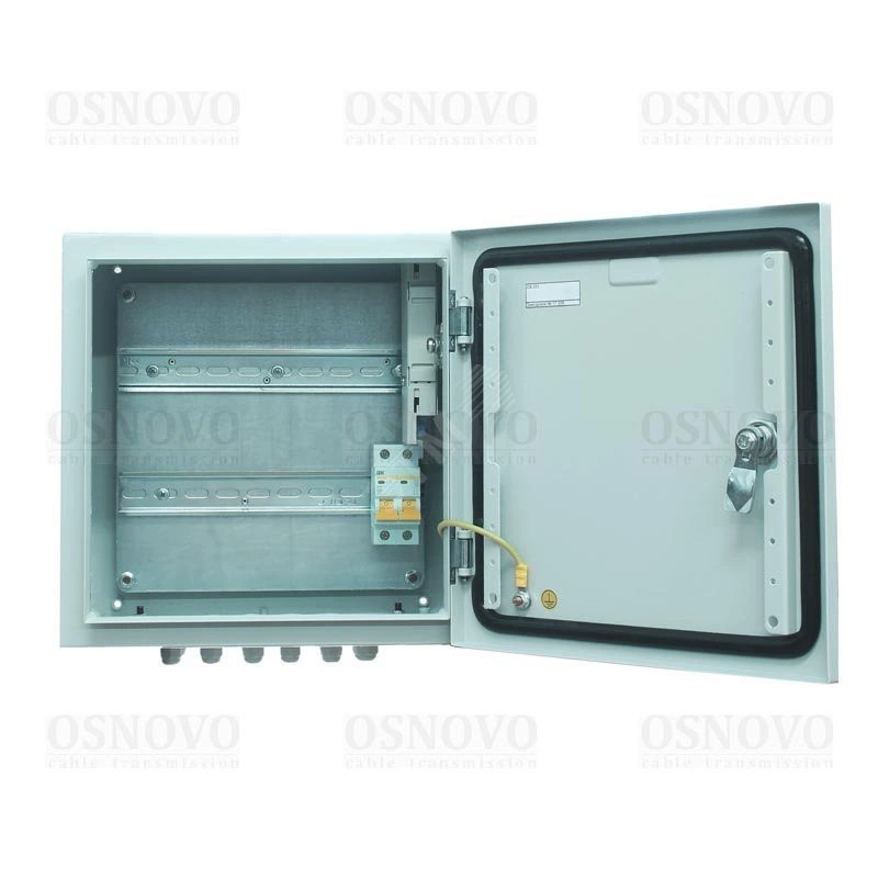 Станция базовая уличная с оптическим кроссом. Встроенные DIN-рейки верхняя - 210мм, нижняя - 150мм.