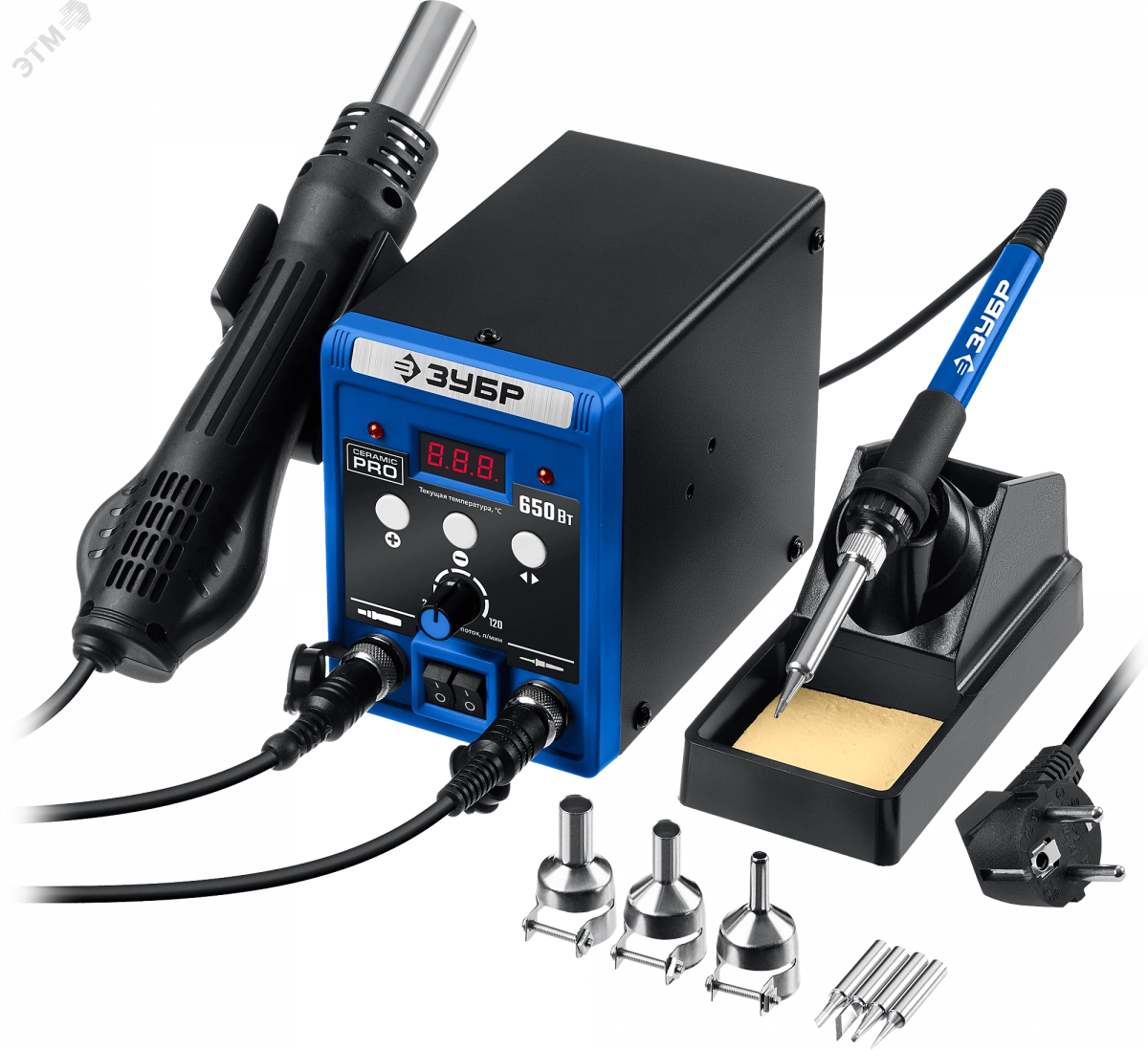 Благодаря продуманной системе управления, паяльные станции ЗУБР позволяют быстро и легко выполнять работы любой сложности, как в профессиональной мастерской, так и в домашних условиях. Антистатическая защита обеспечивает сохранность высокочувствительных радиоэлементов, значительно повышает безопасность работ и продлевает срок службы оборудования. Предназначены для работы с электронными платами при монтаже/демонтаже компонентов, а также для пайки проводников, отпайки и лужения.