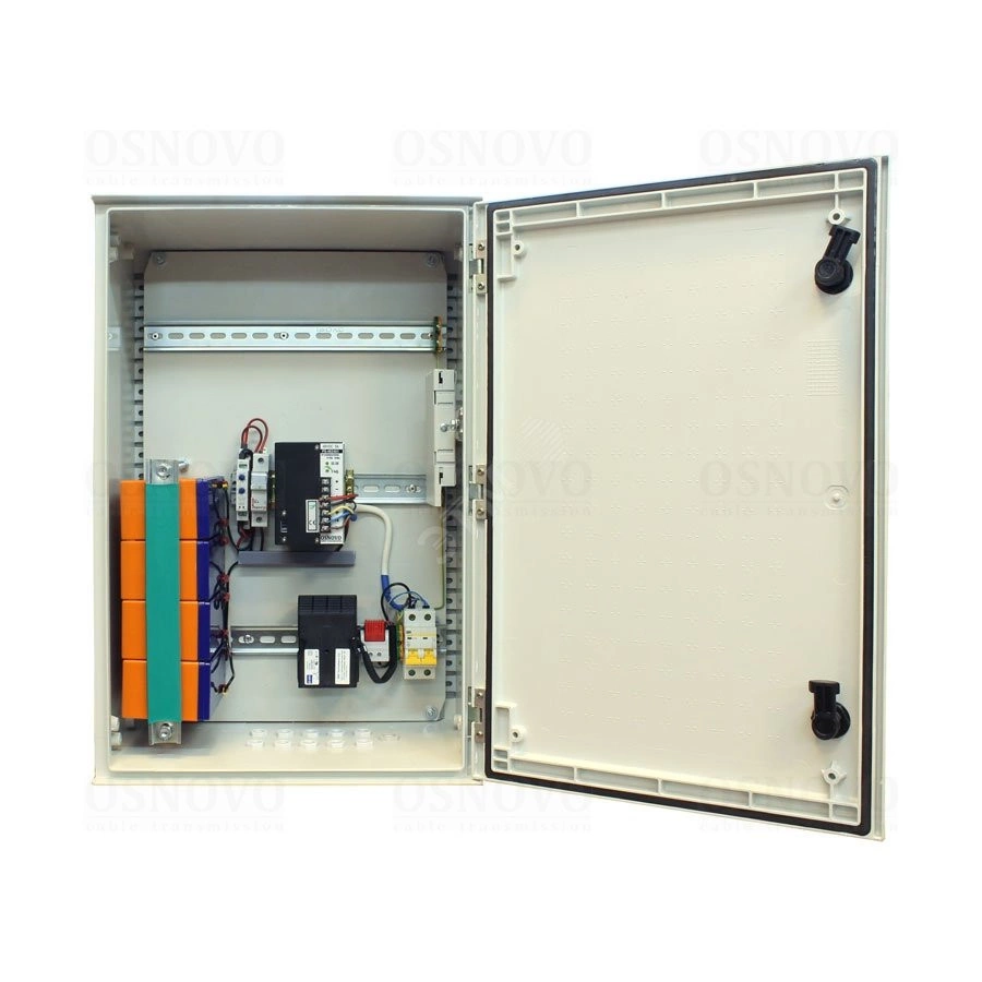Станция уличная в пластиковом шкафу с термостабилизацией и оптическим кроссом. Промышленный БП DC48V(240W), АКБ 48В(7Ач)