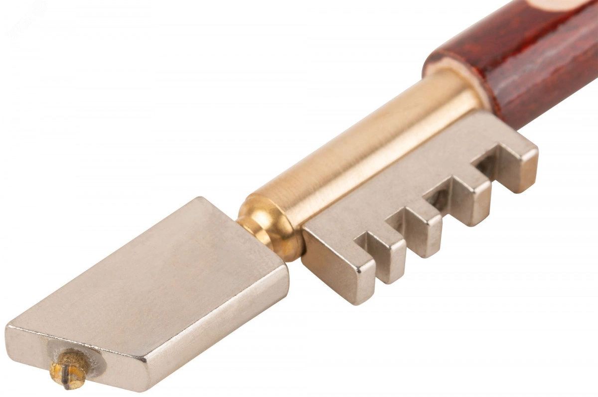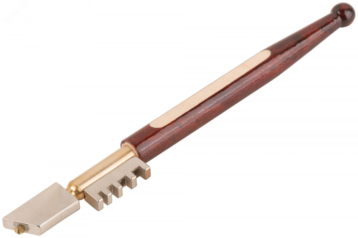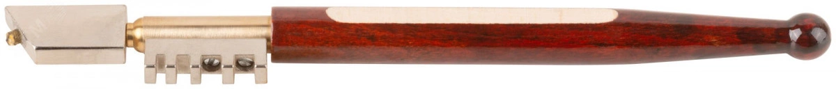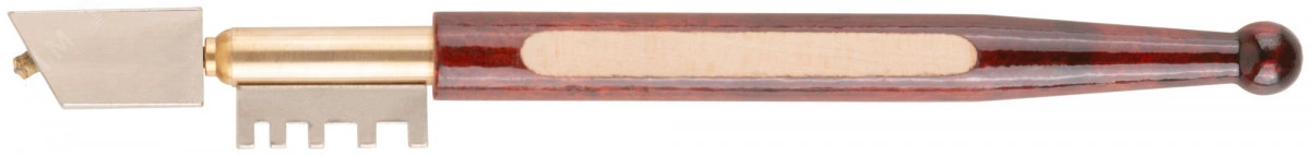 Алмазный резак обладает повышенным ресурсом и износостойкостью|Специальные пазы на рабочей части облегчают разлом стекла|Эргономичная деревянная ручка обеспечивает надежный хват