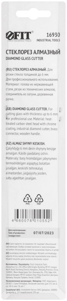Алмазный стеклорез FIT IT предназначен для быстрой и качественной резки стекла толщиной до 6 мм. Алмазный резак обладает высоким рабочим ресурсом и обеспечивают точность работ. Эргономичная деревянная рукоятка обеспечивает надежный хват. Стеклорез оснащен пазами для аккуратного разлома стекла.