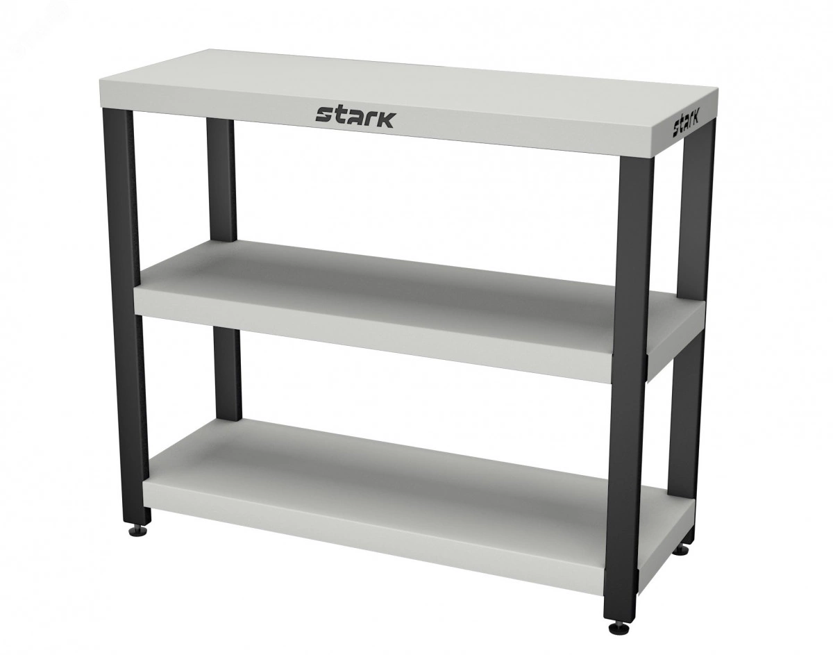 Стеллаж STARK ''STANDARD'' - каркас изготовлен из бесшовного горячекатаного профиля 20х40мм, стеллажи опционально комплектуются батарейными перемычками, компактный размер 800х670х330 мм (ШхВхГ), нагрузочная способность до 500кг, регулируемые по высоте ножки, уникальный дизайн STARK, порошковая заводская покраска RAL 9005/9006.