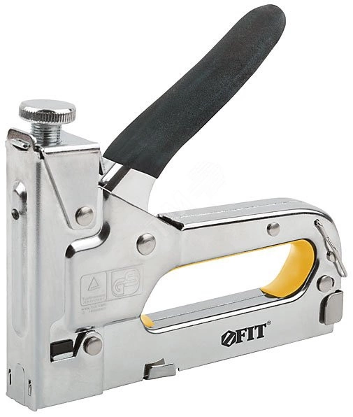 Для скоб 'Тип 53'. Металлический, с регулировочным винтом. Для закрепления обивки мебели, укрепления плакатов, закрепления проволочной сетки и строительства теплиц. Используется соскобами 31304-31314, 31326-31334, 31404-31414.Материал - корпус из инструментальной стали, внутренняя вставка из резины, ПВХ накладка на ручку. Упаковка - блистер.