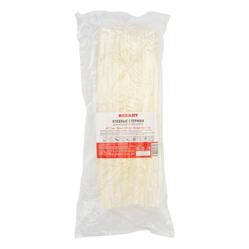 Стержень клеевой d11.3мм L270мм t-85град.C вязкость 18.000Pa.s 1кг прозр. Rexant 09-1857-1
