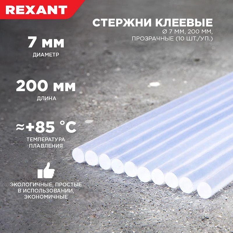 Полное описание: Стержень клеевой d=7.4мм L=200мм прозрачные (уп.10шт) Rexant 09-1103