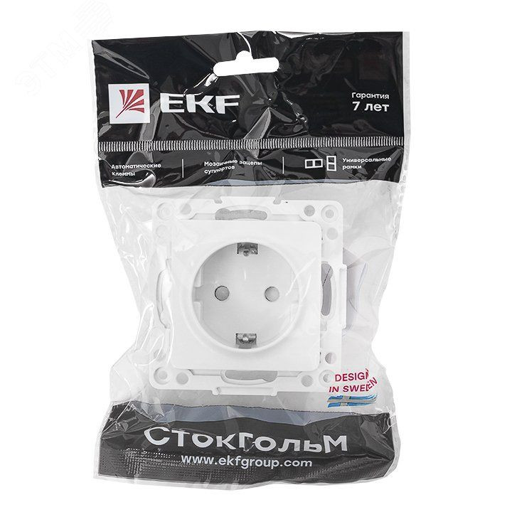 Стокгольм Механизм Розетки 1-местной с/з 16А белый с защ. штор.