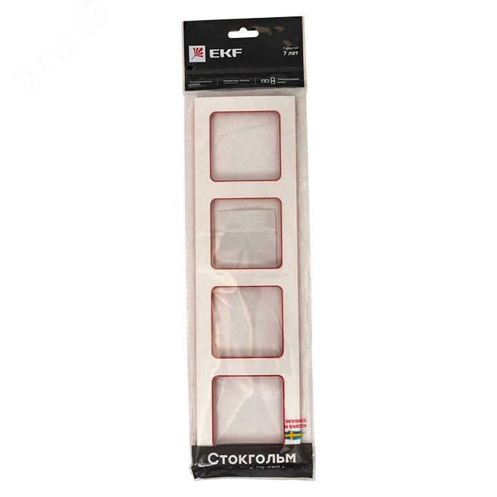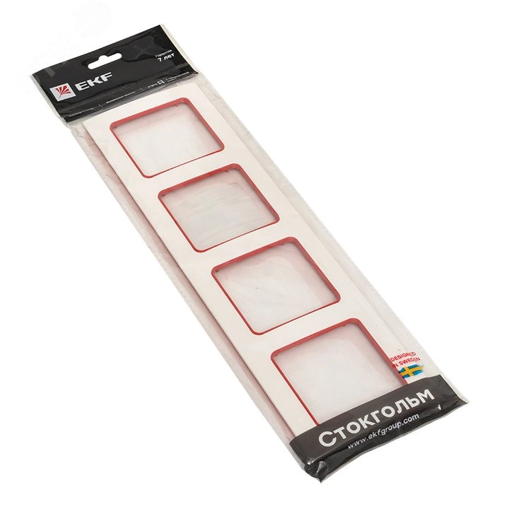 Стокгольм Рамка 4-местная белая с линией цвета красный EKF