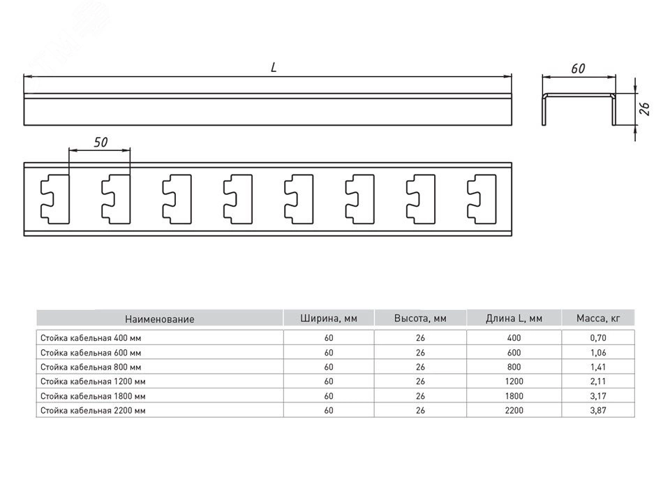 Стойка кабельная 800мм К1152 (2мм) RAL