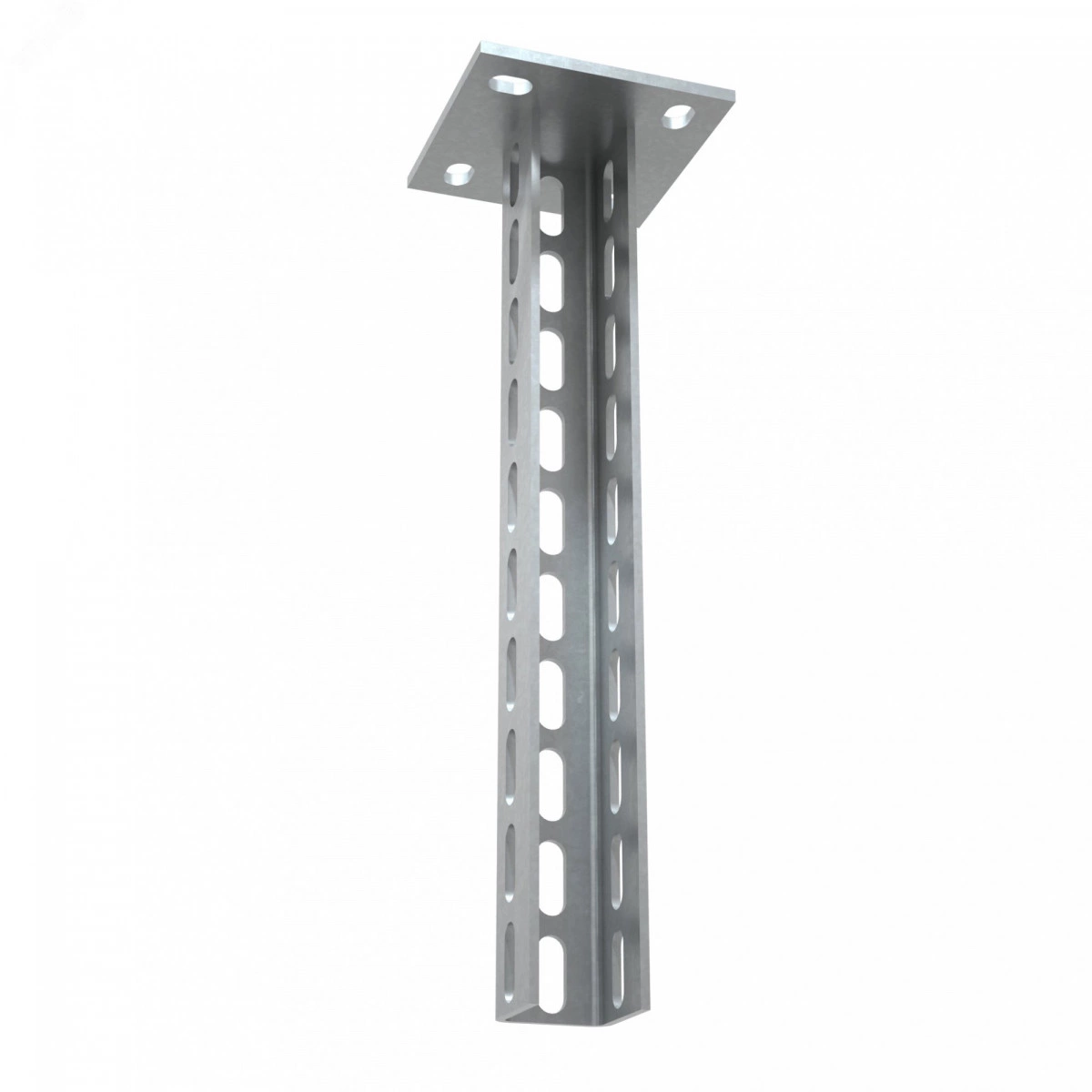 Серия элементов на основе п-образного профиля с приваренным на торце основанием, для крепления металлических лотков к несущей поверхности на любой высоте. Конфигурация изделий придаёт конструкции дополнительную жесткость и прочность. Стойка потолочная тяжелая с тройной перфорацией применяется для потолочного или напольного крепления кабельной трассы. Изделие выполнено из стали оцинкованной электрохимическим способом. Предназначено для применения в местах предпочтительно с сухим климатом, внутри помещений и в слабоагрессивных средах, в соответствии с ГОСТ 15150-69.