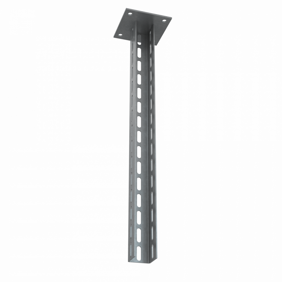 Серия элементов на основе п-образного профиля с приваренным на торце основанием, для крепления металлических лотков к несущей поверхности на любой высоте. Конфигурация изделий придаёт конструкции дополнительную жесткость и прочность. Стойка потолочная усиленная с перфорацией по основанию применяется для потолочного или напольного крепления кабельной трассы. Наличие перфорации по всей длине позволяет закреплять лотки на любой высоте. Изделие выполнено из стали оцинкованной электрохимическим способом. Предназначено для применения в местах предпочтительно с сухим климатом, внутри помещений и в слабоагрессивных средах, в соответствии с ГОСТ 15150-69.