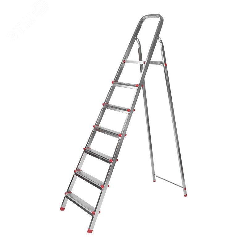 Стремянка металлическая состоит из 7 ступенек, применяется как в строительных целях, так и в быту, дома, на даче, в гараже и саду. Специальное соединительное ушко обеспечивает устойчивость конструкции и надежную фиксацию оборудования в рабочем положении. Ножки лестницы изготовлены в пластиковом покрытии это предотвращает скольжение и защищает напольное покрытие от царапин, а упрочненное крепление ножек предотвращает их выпадение. Гальваническое покрытие гарантирует устойчивость к коррозии и защищает от негативного воздействия окружающей среды. Стремянка из усиленного профиля с 7 широкими ступенями с противоскользящим рифлением не занимает много места. Использование качественных материалов позволяет нагружать стремянку массой до 150 кг.