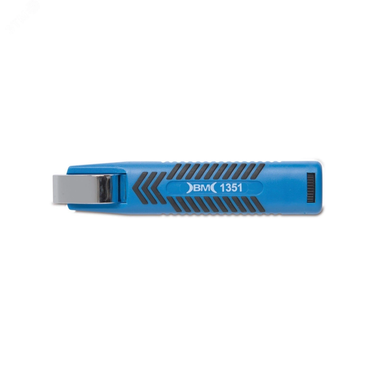 Стриппер для удаления оболочки с любых распространённых кабелей круглого сечения. Преимущества - глубина прорезания изоляции настраивается с помощью регулировочного винта на конце ручки, автоматическая настройка на резку по окружности и на продольную резку, надёжность захвата благодаря мягким вставкам на дуге и ручке, в корпусе - запасное лезвие, корпус из высококачественного, износостойкого полиамида.