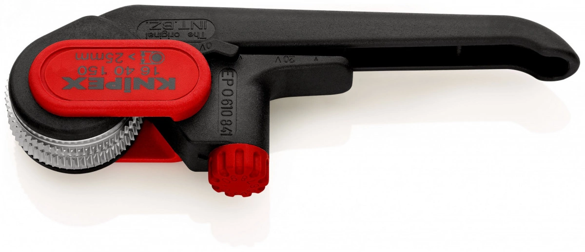 Стриппер для круглого кабеля режимы реза: по окружности и продольный зачистка: > 25 мм L-150 мм усиленная рукояткой из полиамида армированного фиберглассом блистер
