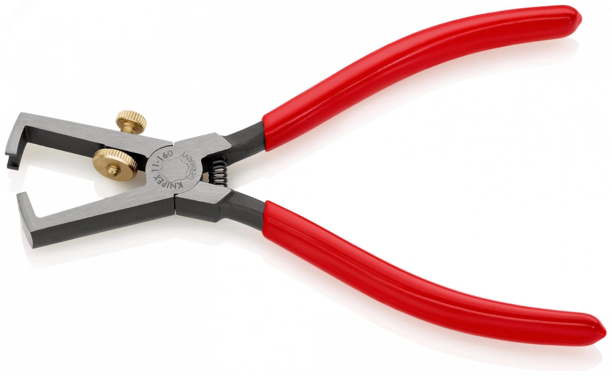 Стриппер для одно- много- и тонкожильного кабеля зачистка: d 5 мм (10 мм AWG 7) с пружиной L-160 мм регулировочный винт для настройки чёрный обливные рукоятки KN-1101160
