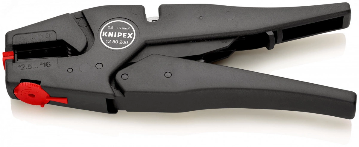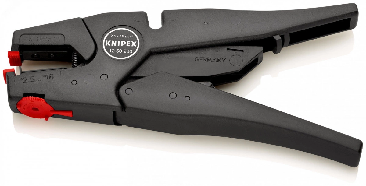 12 50 200 Стриппер самонастраивающийся для одножильного, многожильного и тонкожильного кабеля с пластиковой или резиновой изоляцией. самостоятельно подстраивается на различные сечения кабелей, что исключает их повреждение. глубина реза также настраивается. с резаком для медных и алюминиевых многожильных кабелей сечением до 10 мм? и одножильных кабелей сечением до 6 мм?. механика с легким ходом. ножи и пластмассовые зажимы легко заменяются. малый вес. - Параметры удаления изоляции кв.мм - 2,5-16,0mm? - AWG - 14-6