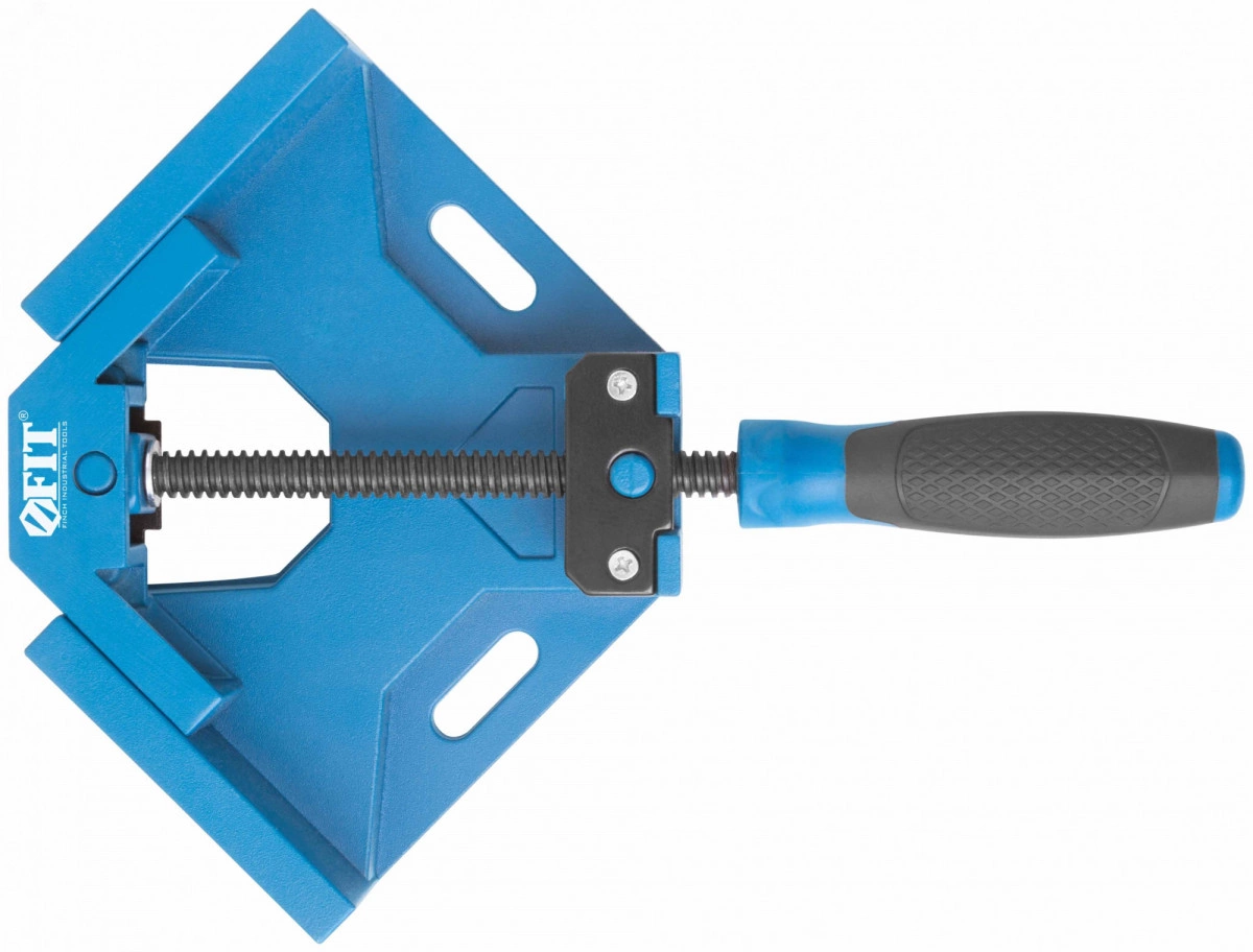 Струбцина угловая усиленная FIT IT предназначена для фиксации изделий под углом 90 градусов. Максимальная ширина зажимаемых изделий 70 мм. Ребра жесткости на обратной стороне струбцины повышают прочность конструкции. Эргономичная противоскользящая прорезиненная рукоятка обеспечивает надежный хват. Корпус струбцины изготовлен из цельнолитого алюминия, сочетающего в себе высокую прочность и малый вес. Пазы в корпусе струбцины дают возможность стационарной установки. Черное покрытие винта предотвращает коррозию.