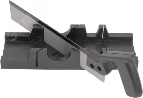 С пилой, фигурное. Для распиловки под углом 45 градусов/90 градусов/135 градусов деталей шириной до 65 мм. Материал - пластик.