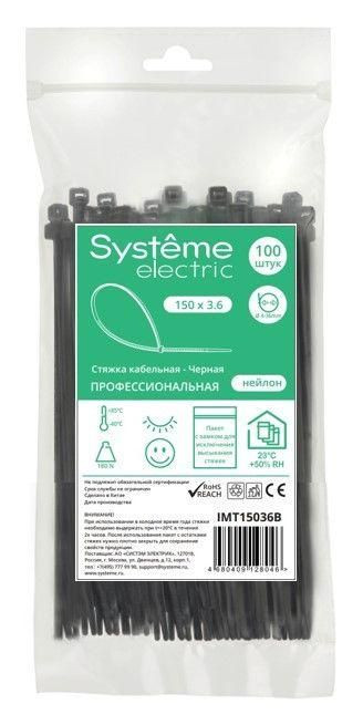 Полное описание: Стяжка кабельная 150х3.6 черн. (уп.100шт) SE IMT15036B