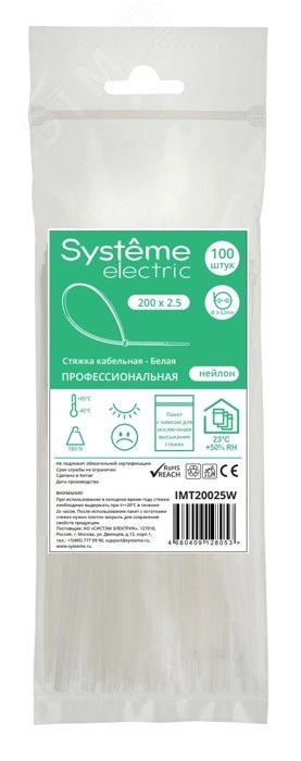 Широко применяются для организации и крепления кабелей/проводов в электромонтаже.|Температура эксплуатации: -40…+85С|Полиэтиленовый пакет имеет ЗИП-замок, что предотвращает высыхание стяжек при длительном хранении. |Подходят для использования внутри