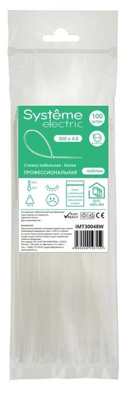 Широко применяются для организации и крепления кабелей/проводов в электромонтаже.|Температура эксплуатации: -40…+85С|Полиэтиленовый пакет имеет ЗИП-замок, что предотвращает высыхание стяжек при длительном хранении. |Подходят для использования внутри