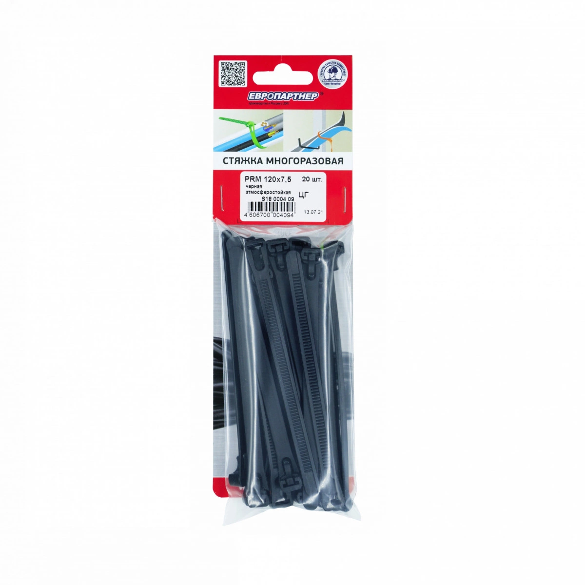 Полное описание: Стяжка многоразовая нейлоновая PRM 7,5х120мм, черная (20 шт)