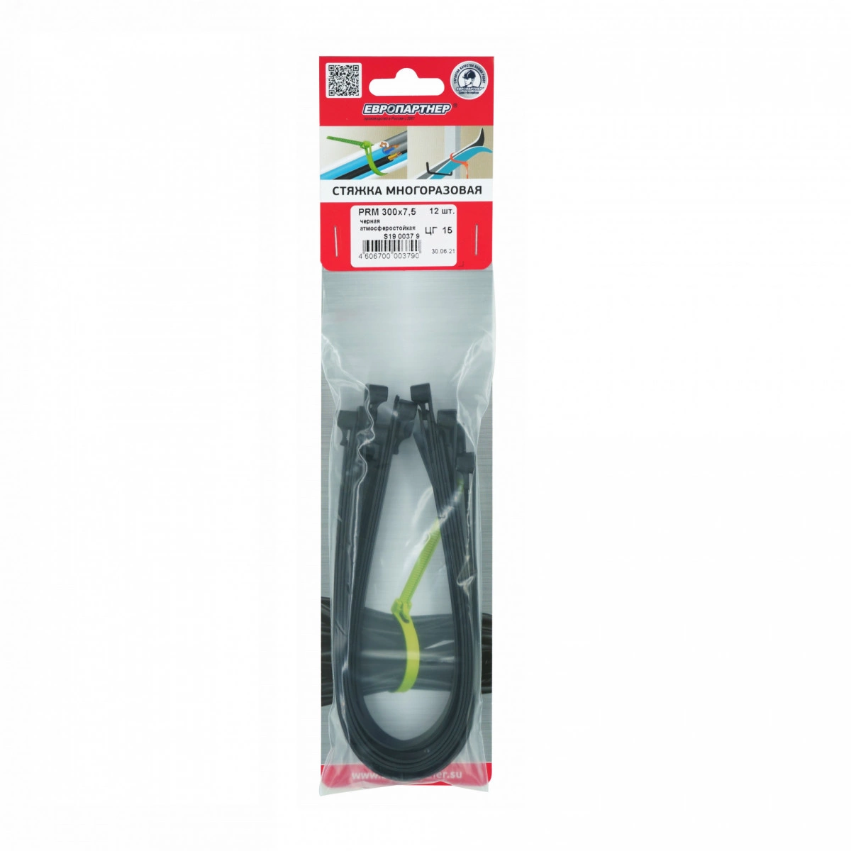Полное описание: Стяжка многоразовая нейлоновая PRM 7,5х300мм, черная (12 шт)