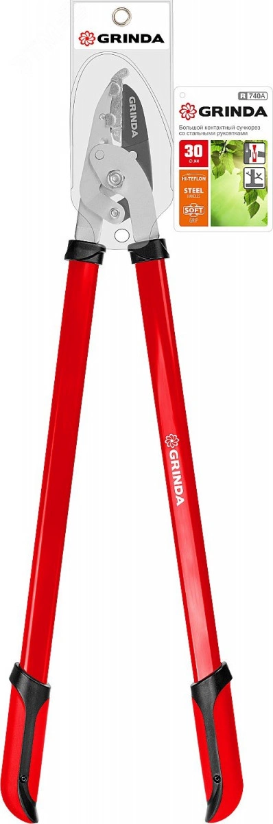 Большой контактный сучкорез со стальными рукоятками Grinda R-740A 40233_z02 удобен в эксплуатации благодаря - прочной и долговечной стали, удобным рельефным рукояткам, качественному исполнению лезвий, которые изготовлены из высококачественной углеродистой стали и закалены. Режущее лезвие остро заточено.