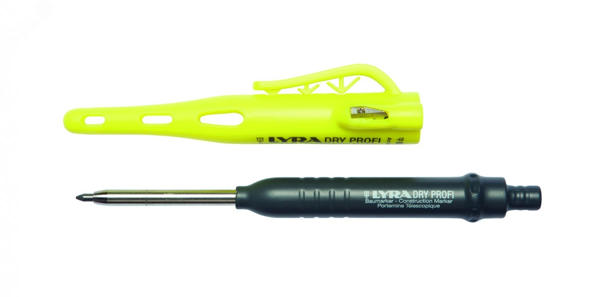 Маркер с функциональным механизмом автоматической подачи стержня в стабильной трубке из нержавеющей стали. Простое использование одной рукой благодаря улучшенному клипу.Встроенная точилка с направляющей - позволяет производить заточку стержня в колпачке с клипом, не снимая его с кармана. Подходит для всех поверхностей (дерево, металл, стекло, керамика...). Входящий в комплект специальный графитовый стержень просто стирается с гладких поверхностей при легком увлажнении. Отдельно можно приобрести цветные сменные стержни 2511-1, 2511-2, 2511-3