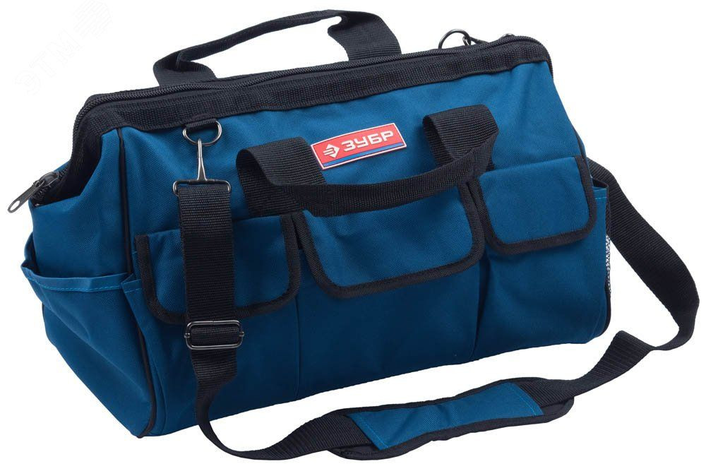 Сумка ``ЭКСПЕРТ`` ЗУБР 38645-17 служит для хранения и транспортировки различного инструмента. Изготовлена из высококачественного нейлона и отличается хорошими прочностными характеристиками. Имеет 17 карманов, где удобно размещаются все необходимые инструменты и аксессуары, а также специальное крепление для переноски строительного уровня. Быстрый доступ к инструментам обеспечивается за счет специальной конструкции, которая позволяет широко открывать сумку. Качественная и надежная ``молния`` имеет долгий срок службы. Сумку легко и удобно переносить взяв за ручки или с помощью регулируемого плечевого ремня. Размер - 420х210х280 мм.