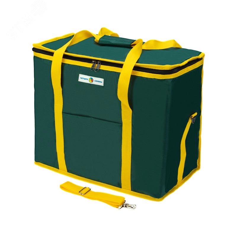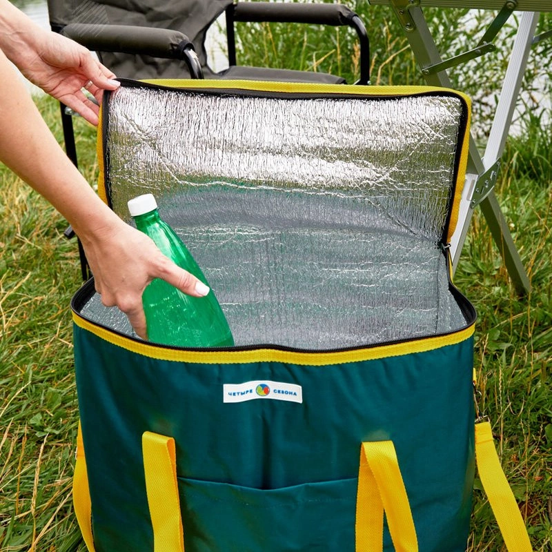 Термосумка представляет собой дорожный аксессуар, который позволяет сохранять температуру продуктов в течение длительного времени. С внешней стороны сумка покрыта прочной и влагостойкой тканью, а с внутренней – фольгированным материалом, обладающим высокими теплоизоляционными свойствами. Имеет два слоя утепления, что увеличивает время сохранения холода/тепла внутри контейнера. Аксессуар оснащен специальным внутренним карманом для аккумулятора холода. Сумка оборудована прочным ремнем, за счет чего ее комфортно и удобно носить плече и в руках. Термосумка не имеет жесткого каркаса, благодаря чему после использования легко скручивается и не занимает много места.