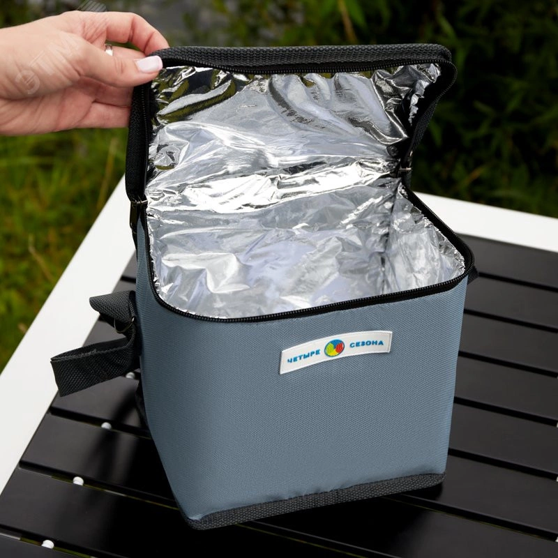 Термосумка представляет собой дорожный аксессуар, который позволяет сохранять температуру продуктов в течение длительного времени. С внешней стороны сумка покрыта прочной и влагостойкой тканью, а с внутренней – фольгированным материалом, обладающим высокими теплоизоляционными свойствами. Имеет два слоя утепления, что увеличивает время сохранения холода/тепла внутри контейнера. Аксессуар оснащен специальным внутренним карманом для аккумулятора холода. Сумка оборудована прочным ремнем, за счет чего ее комфортно и удобно носить на плече. Термосумка не имеет жесткого каркаса, благодаря чему после использования легко скручивается и не занимает много места.