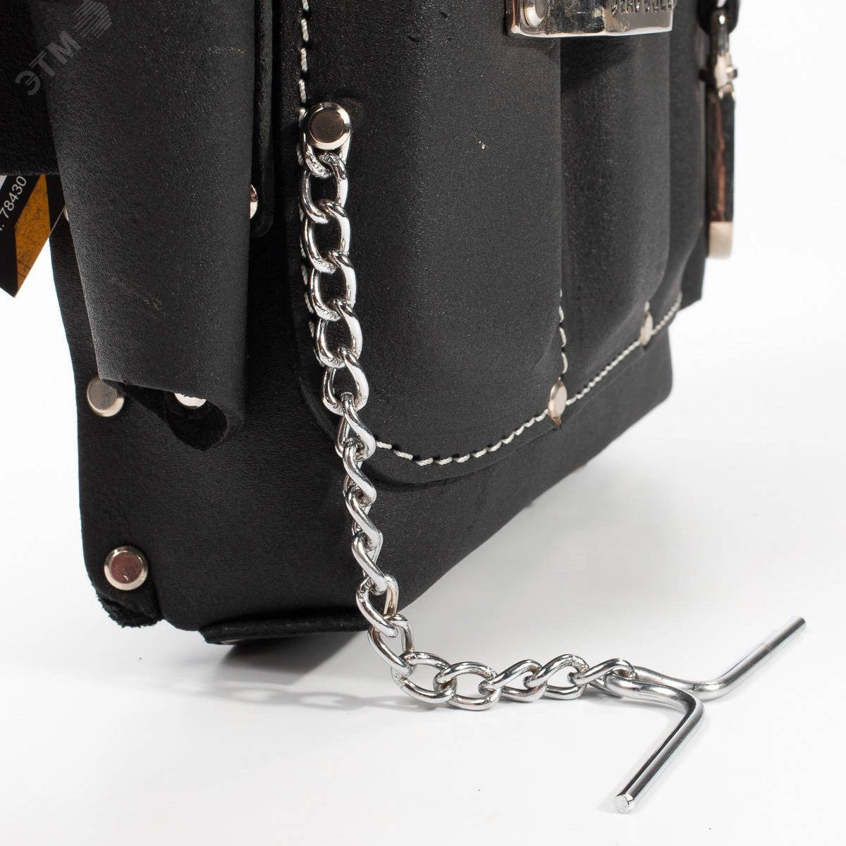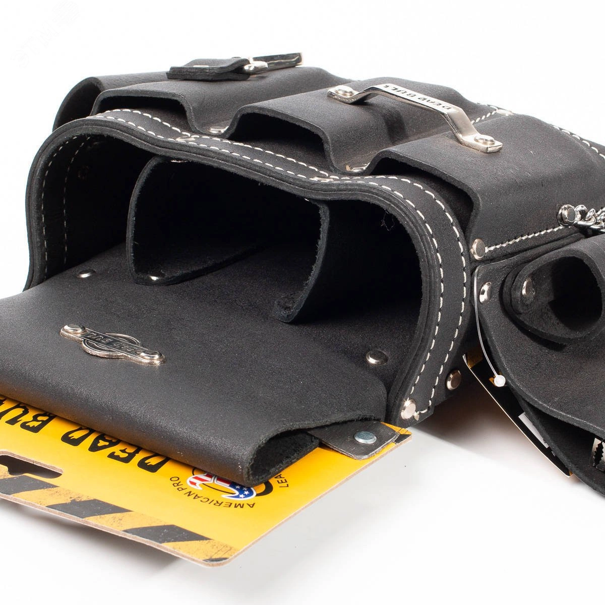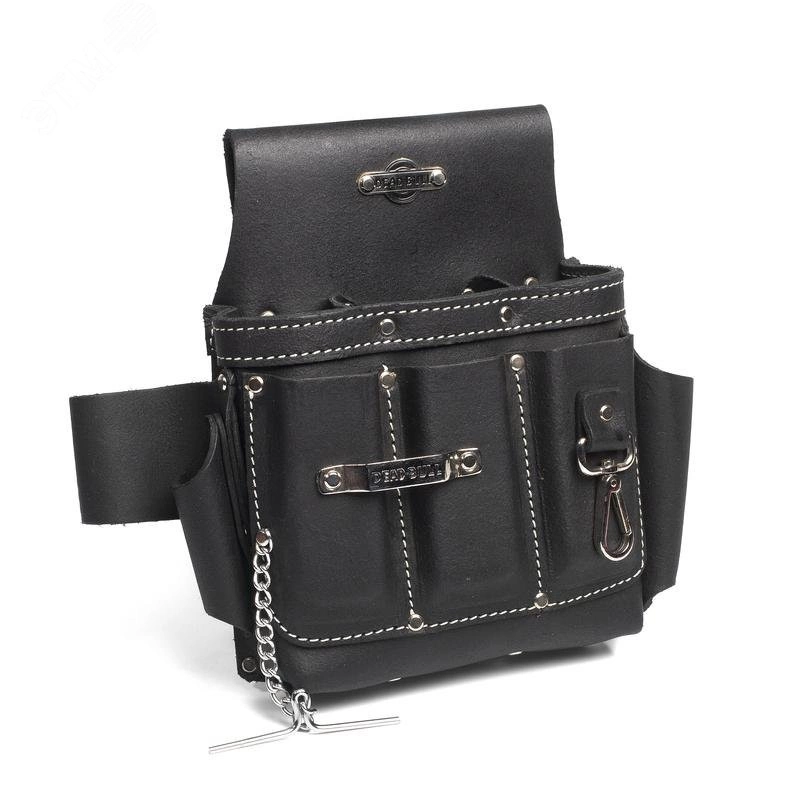 Материал - буйволиная кожа, дубленая в масле. Толщина кожи - 2.8 мм. Конструкция - 6 карманов и 3 кожаных элемента для подвеса, 2 металлических держателя, стальной карабин. Все кожаные элементы проклепаны металлическими заклепками в местах наибольшей нагрузки и прошиты девятислойной крученой нейлоновой нитью. Ширина шлейки под ремень - 80 мм. Толстые стенки поддерживают форму сумки. Отверстие для подвешивания на задней стороне шлейки. Габариты - 210х270 мм/ Вес - 0.60 кг