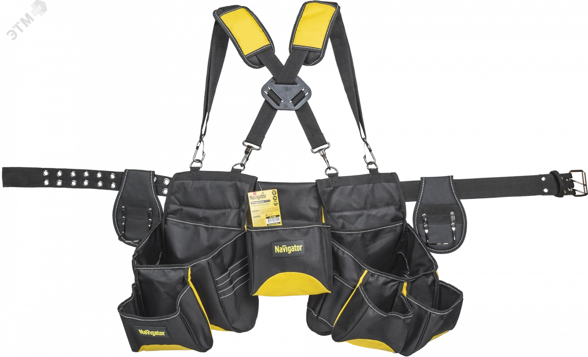 Пятимодульная cумка-пояс монтажника Navigator NTA-Bag05 с наплечными ремнями используется для переноски различных инструментов, монтажных принадлежностей и средств защиты. Обеспечивает быстрый и удобный доступ к инструменту, что особенно актуально при работе на высоте. Наплечные ремни-суспендеры равномерно распределяют нагрузку на спину и плечи, обеспечивая комфорт при длительной работе. и секциями позволяют комфортно и эффективно разместить любой инструмент и расходники. Два стальных держателя повышенной надежности на мощных заклепках для безопасного размещения и быстрого доступа к молотку, гвоздодеру или шуруповерту. Регулируемый по длине ремень с металлической пряжкой надежно крепится на поясе. Четыре точки крепления для наплечных ремней-суспендеров (ремни в комплекте). Наплечные ремни с мягкими накладками обеспечивают равномерное распределение нагрузки в процессе носки.