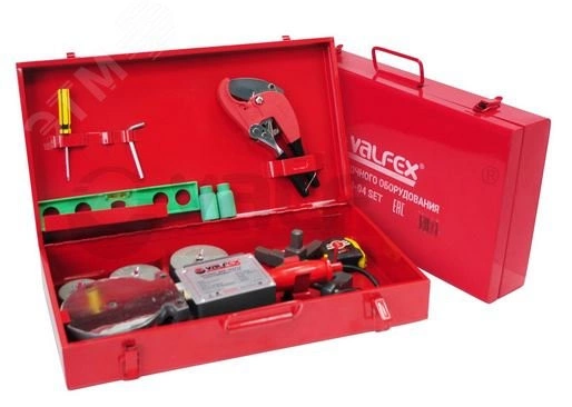 Набор сварочного оборудования предназначен для ручной раструбной полифузионной сварки полимерных труб и фитингов диаметром от 20 до 63 мм профильным нагретым инструментом в раструб.