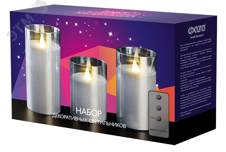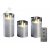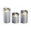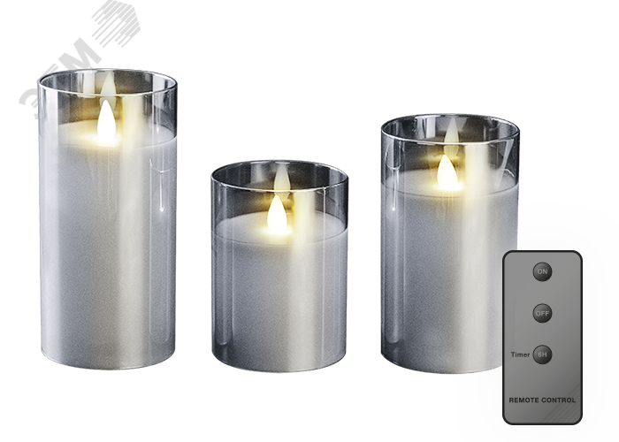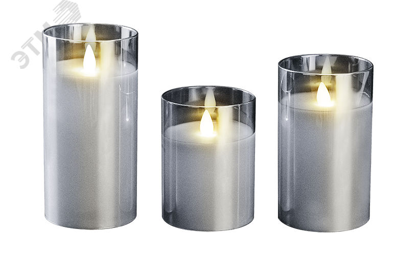Восковые светодиодные свечи в корпусе из декоративного стекла Необыкновенный эффект 'живого пламени' В комплект 3 свечи разной высоты (10см, 12.5см, 15см) Предназначены для декоративного освещения внутри помещений Создают ощущение праздника и уюта, романтической и торжественной обстановки. Пожаробезопасны. Нет открытого огня, нет риска возгорания, нет восковых следов. Очень экономичны (светодиоды с малым потреблением энергии).
