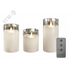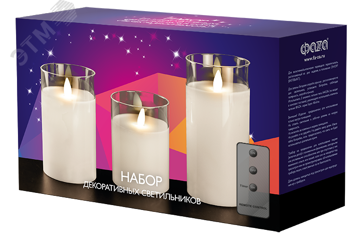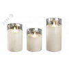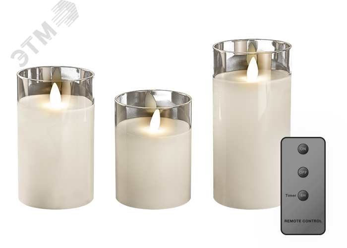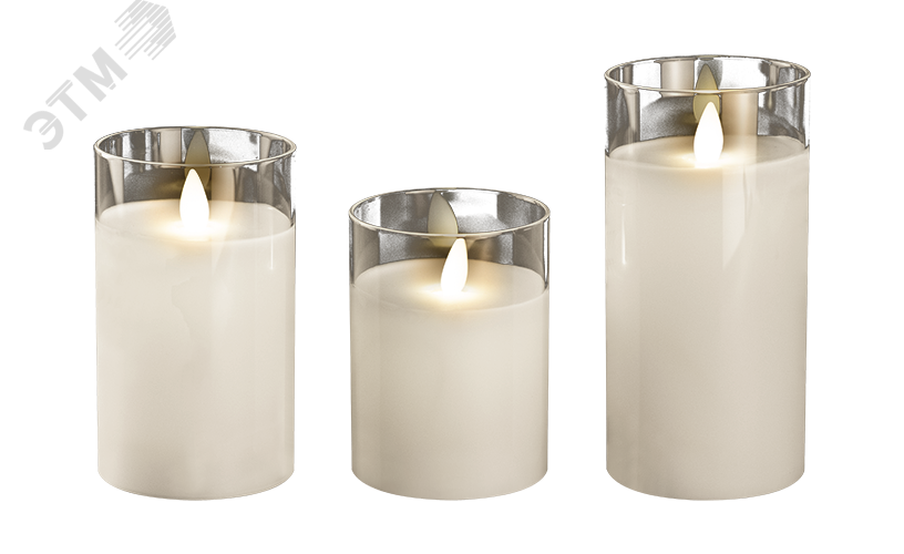Восковые светодиодные свечи в корпусе из декоративного стекла Необыкновенный эффект 'живого пламени' В комплект 3 свечи разной высоты (10см, 12.5см, 15см) Предназначены для декоративного освещения внутри помещений Создают ощущение праздника и уюта, романтической и торжественной обстановки. Пожаробезопасны. Нет открытого огня, нет риска возгорания, нет восковых следов. Очень экономичны (светодиоды с малым потреблением энергии)