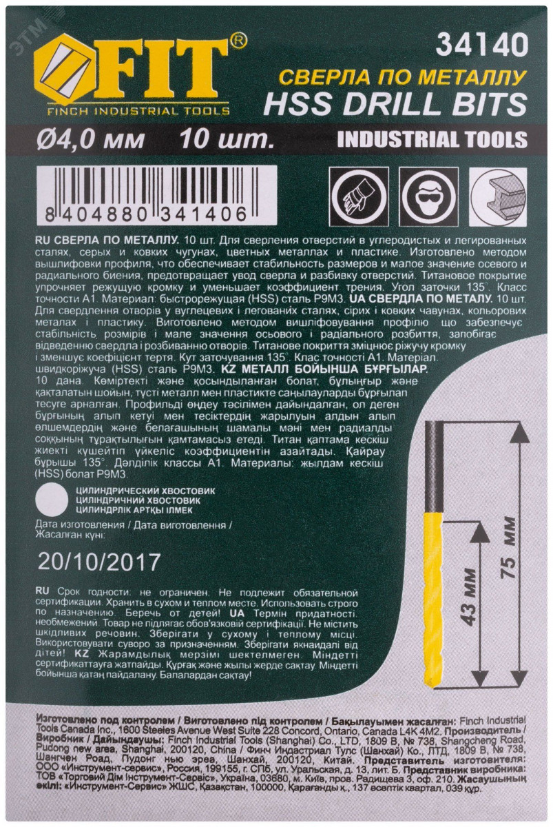 Сверла HSS по металлу, титановое покрытие 4.0 мм (10 шт)