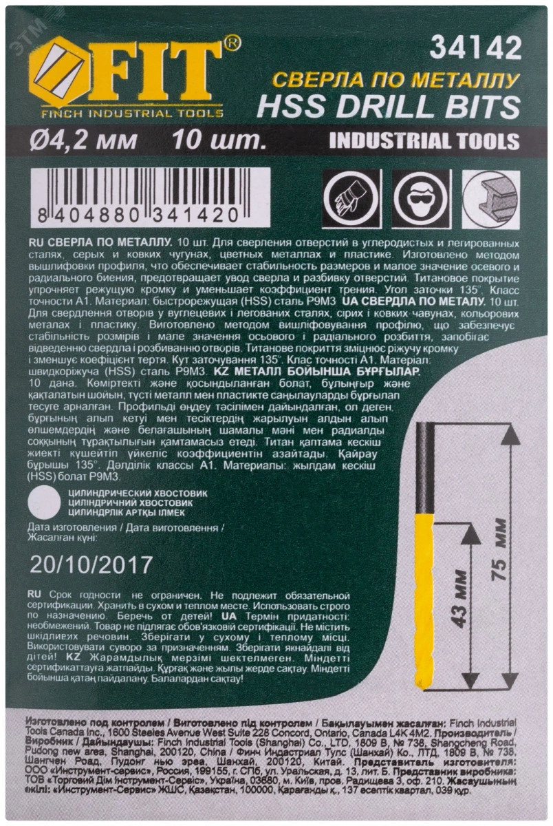 Сверла HSS по металлу, титановое покрытие 4.2 мм (10 шт)