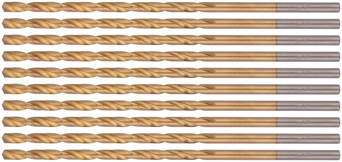 Сверла HSS по металлу, удлиненные, титановое покрытие 3.5х112 мм (10 шт)