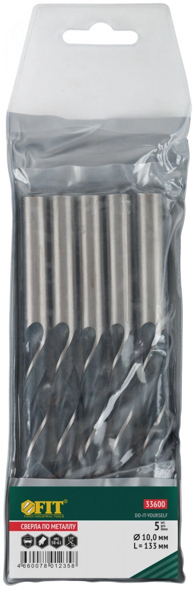 Сверла по металлу HSS черненые 10,0x133 мм (5 шт)