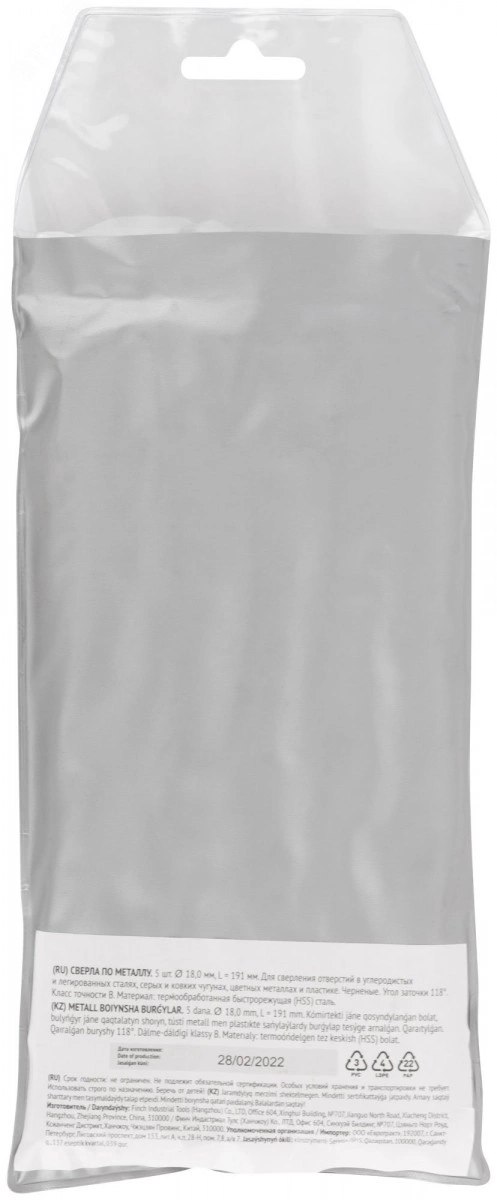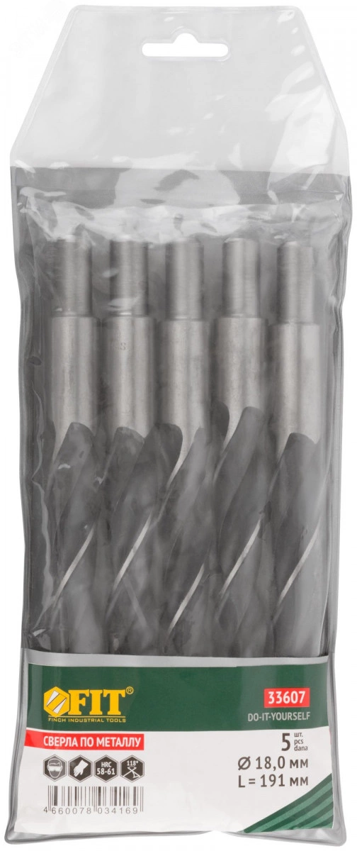 Сверла по металлу HSS черненые 18,0x191 мм (5 шт.)