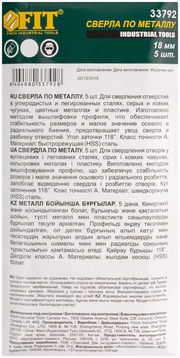 DIN 338. Цилиндрический хвостовик. Полированное. Угол заточки 118 градусов. Класс точности А1. Материал - быстрорежущая (HSS) сталь. Упаковка - картонный конверт.