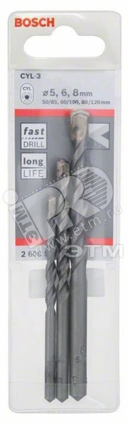 Сверло CYL-3 обеспечивает долгий срок службы при сверлении бетона. Причина его долговечности заключается в особом очень прочном твердом сплаве, разработанном и выпускаемом компанией Bosch. Сплав предназначен для условий регулярного использования и обеспечивает высокую износостойкость при работе по бетону. Кроме того, эффективная большая U-образная спираль сверла обеспечивает хорошее удаление пыли, снижает трение, выделение тепла и износ, что приводит к увеличению срока службы. Сверло долго служит при сверлении отверстий для крепежных деталей в абразивных материалах, таких как бетон и натуральный камень. Качество сверла подтверждает отметка о прохождении теста комиссии ассоциации по сверлам по бетону PGM, что гарантирует соответствие жестким допускам, точности сверления и надежности установки крепежных деталей