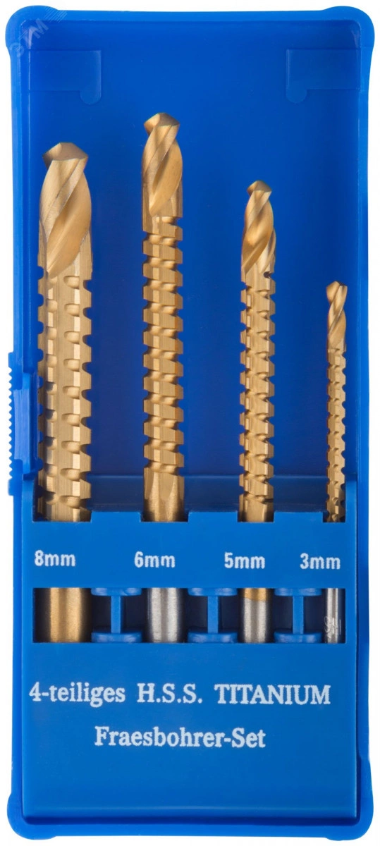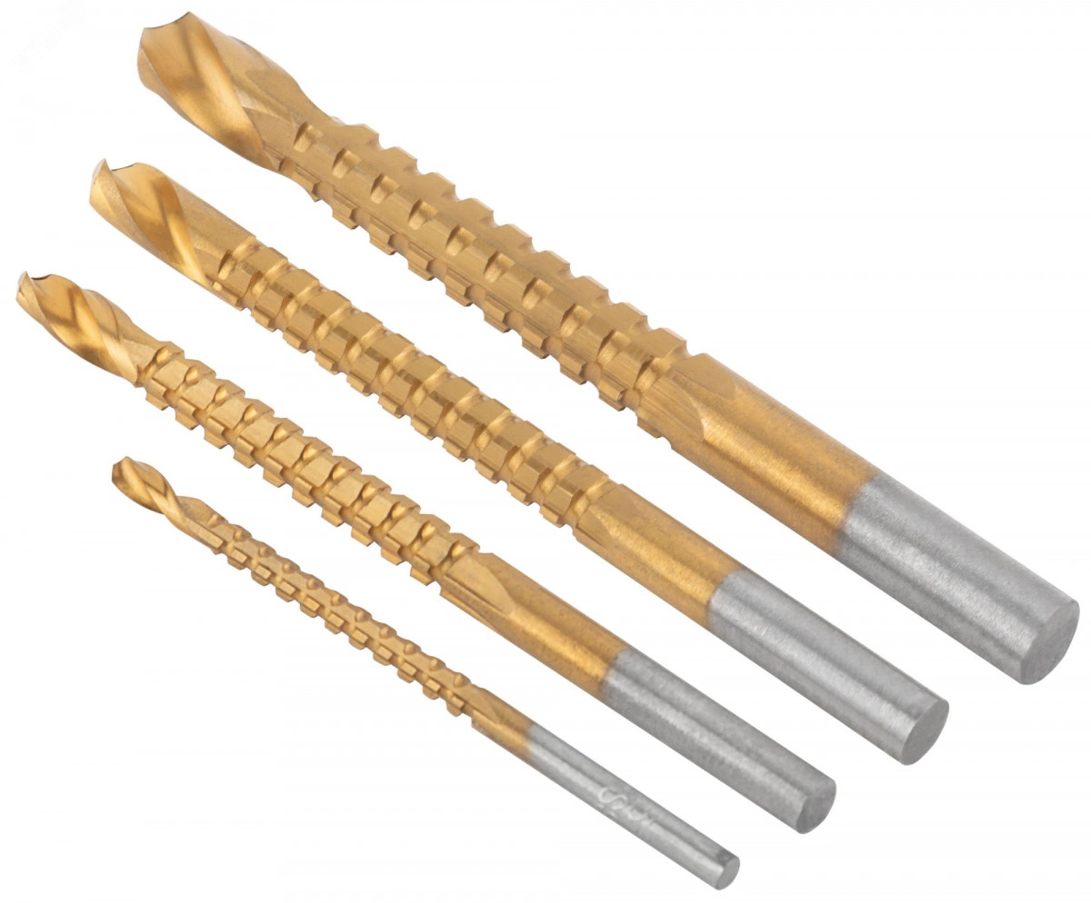 Сверло-фреза универсальное титановое покрытие, набор 4 шт (3, 5, 6, 8 мм)