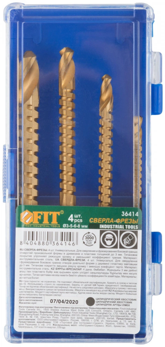 Универсальное. Для высверливания и выпиливания боковой гранью отверстий произвольной формы в дереве и пластмассе толщиной до 3 мм. Цилиндрический хвостовик. Титановое износостойкое покрытие. Упаковка - 36406,36408 – в блистере, 36414 – пластиковая коробка. (Набор - 4 шт. -3, 5, 6, 8 мм).