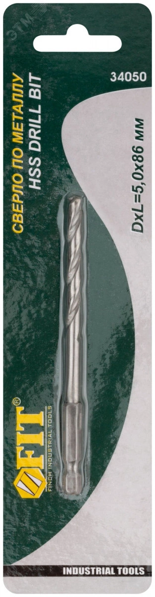 Сверло HSS по металлу,полированное, U-хвостовик под биту, инд.упаковка 5.0 мм