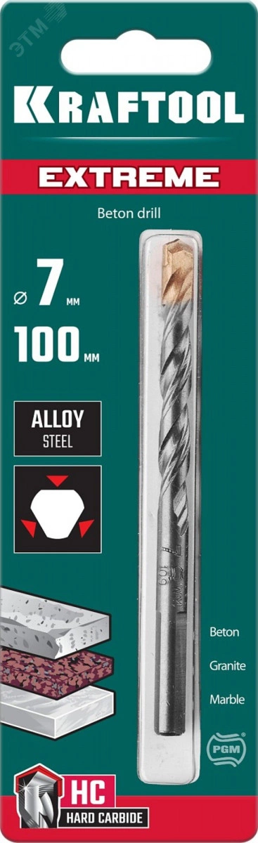Сверло по бетону, 3-х гранный хвостовик EXTREME 7 х 100