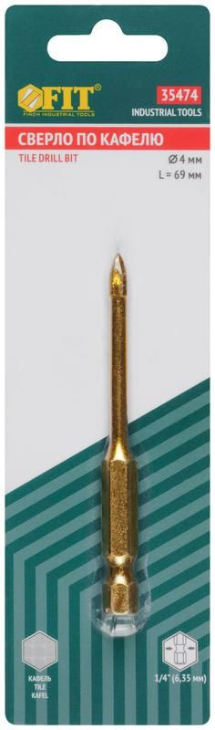 Полное описание: Сверло по кафелю 4 режущие кромки титан. покрытие U-хвостовик под биту 4х69мм FIT 35474