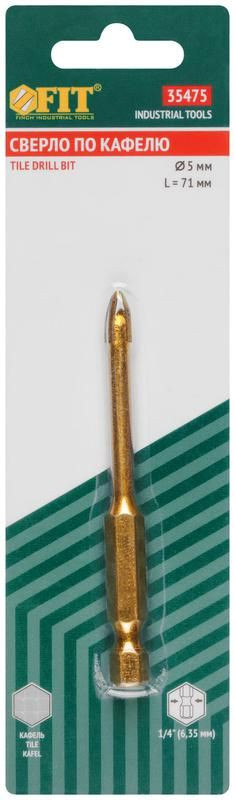 Сверло по кафелю 4 режущие кромки титан. покрытие U-хвостовик под биту 5х71мм FIT 35475