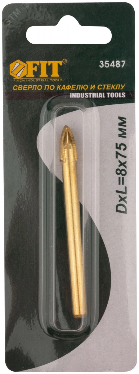 Сверло по кафелю и стеклу, 4 режущие кромки, титановое покрытие 8х75 мм